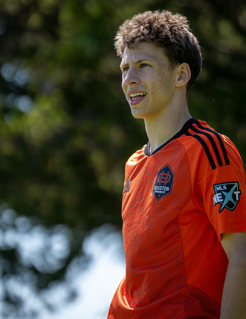 Keegan Ahrens is a winger for Houston who plays with a relentless work rate on both sides of the ball. In attack, he uses his speed and agility to drive at defenders, create separation, and set up teammates. His first touch is clean, his runs are well‑timed, and he’s a confident finisher when he gets into dangerous areas. Defensively, he tracks back hard, closes space quickly, and supports his fullback with real commitment.